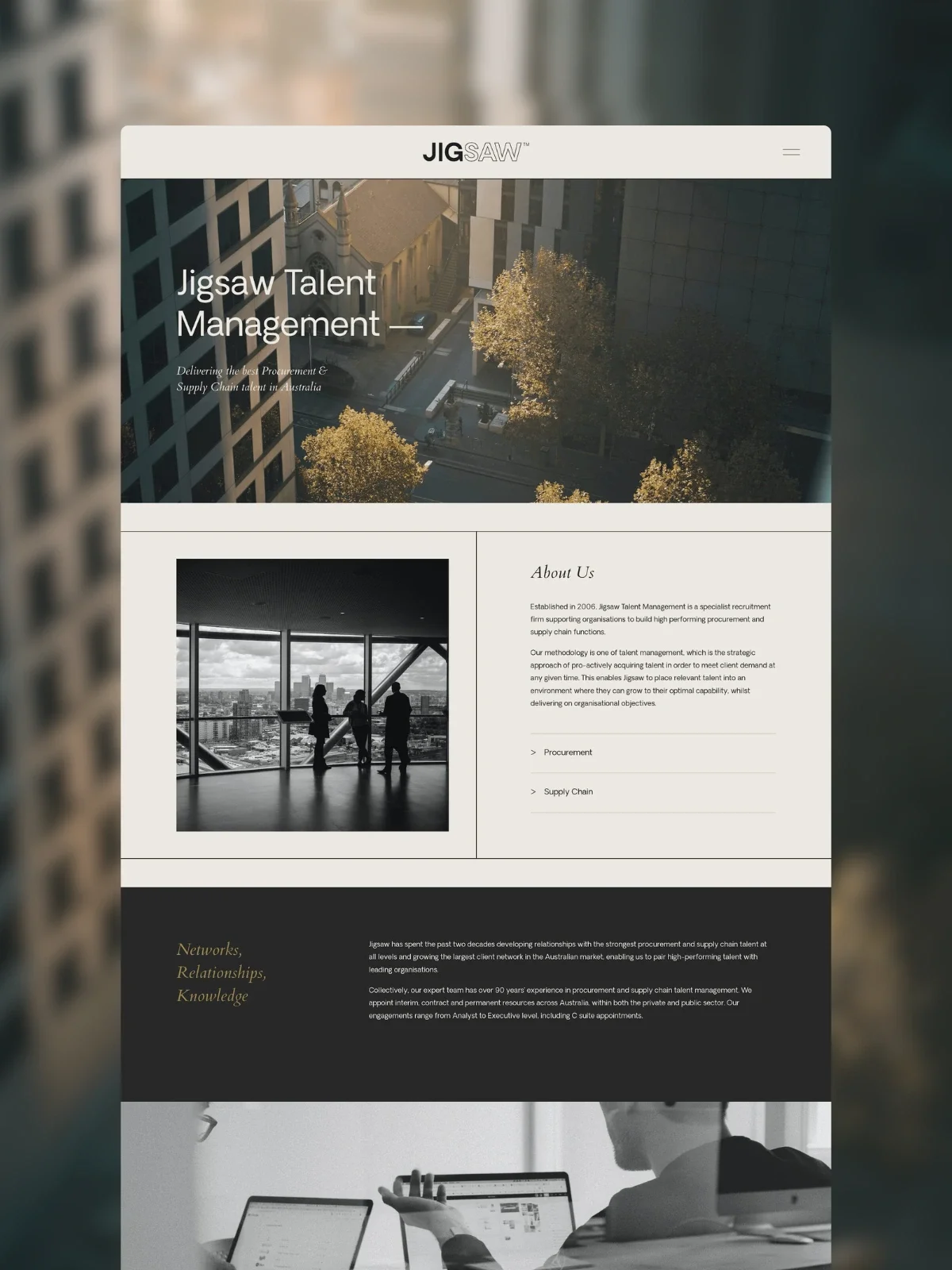 WEBSITE DESIGN PORTFOLIOCustom websites that help businesses elevate their online presence Jigsaw Talent Arcadia Social Bandit Uncommon Feasts Sentrex Wiebke Queisser